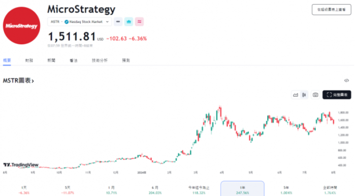 微策略先前宣布的10比1的股票分割將于8月7日生效。今年以來,其股價已經上漲了118%。