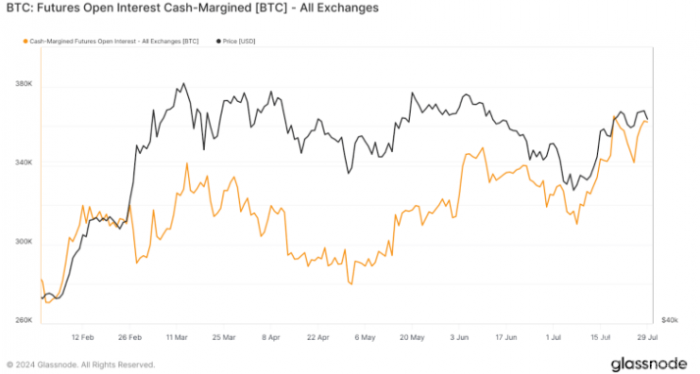 隨著2024年的推進,Bitcoin市場的波動性和交易量持續引起投資者的關注。最新的鏈上數據顯示,Bitcoin期貨的未平倉合約數量(Open Interest, OI)與Bitcoin現貨價格呈現出高度相關的走勢。