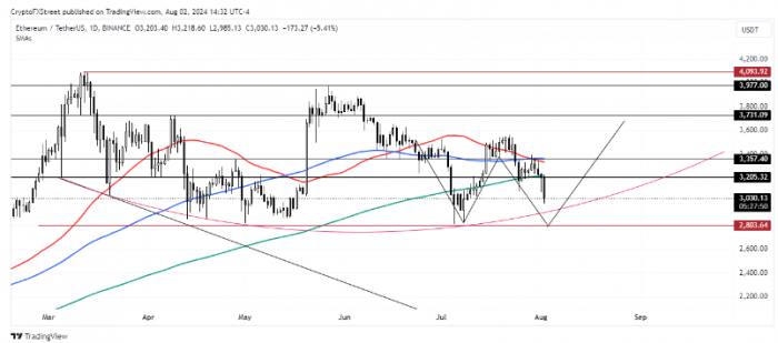 若 ETH 跌破 2803 美元支撐位,則看漲理論將失效。