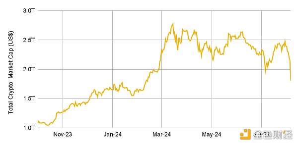 過去24小時對Crypto市場來說是充滿挑戰的,大多數主要Tokens全盤下跌兩位數。在同一時期,Crypto總市值從2.16萬億美元下跌至1.76萬億美元,跌幅近20%。最近的這次暴跌是自7月29日星期一開始的更廣泛下跌趨勢的最新篇章。自那時以來,總市值已從2.48萬億美元下跌至目前的水平,一周內下跌了28%。
