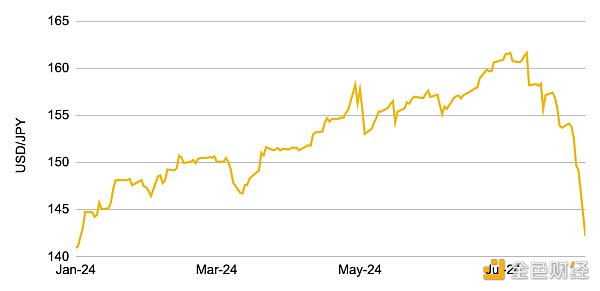 東京股市受到貨幣走強的影響,因為日元自7月中旬以來已升值約12%。此前,日本央行加息,這實際上給從事“套利交易”策略的投資者帶來了很大痛苦(借入利率較低的日元,然后將收益再投資于回報率更高的貨幣,如美元)。日元走強還導致上述投資者償還日元債務而產生拋售壓力,這是導致美國股價下跌的一個因素。