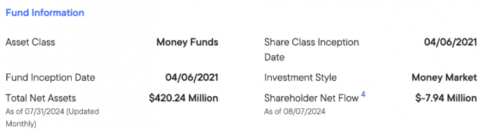 據(jù)富蘭克林鄧普頓介紹,F(xiàn)OBXX基金將其總資產(chǎn)的至少99.5%投資于由美國(guó)政府完全抵押的美國(guó)政府證券、現(xiàn)金和回購(gòu)協(xié)議。該基金旨在通過(guò)這些安全的投資工具,為機(jī)構(gòu)和散戶投資者提供穩(wěn)定且較高的回報(bào)。截至7月31日,F(xiàn)OBXX的管理資產(chǎn)約為4.2億美元,成為市場(chǎng)上第二大貨幣市場(chǎng)基金。