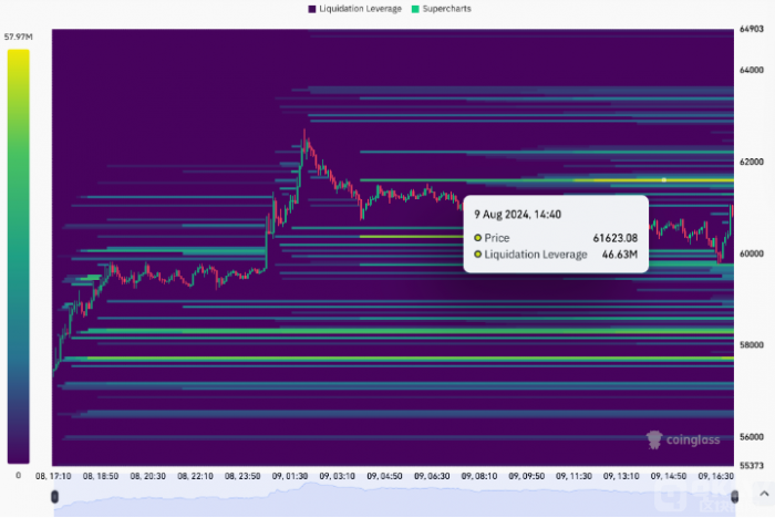 CoinGlass的數(shù)據(jù)顯示,在62,000美元附近,存在大量賣單,這進(jìn)一步強(qiáng)化了這一阻力位的影響力。現(xiàn)貨價(jià)格與62,000美元之間的賣單接近4663萬美元,為Bitcoin的上行增加了壓力。