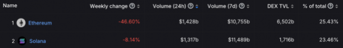 Solana DEX交易量下滑,其他鏈卻迎來增長