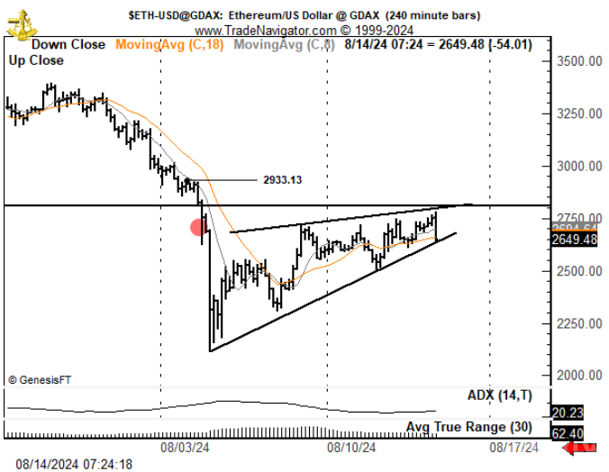 盡管ETH在8月12日一度漲至2750美元,但在2800美元的供應(yīng)區(qū)域遇到了強(qiáng)勁阻力,當(dāng)前價(jià)格接近這一區(qū)域。McKenna表示,長期來看,他對當(dāng)前價(jià)格的看漲預(yù)期并不強(qiáng)烈。