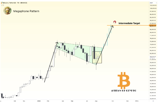 著名分析師Titan of Crypto預(yù)測(cè),如果Bitcoin在九月份成功突破當(dāng)前的價(jià)格區(qū)間,其下一個(gè)主要價(jià)格目標(biāo)可能為86,000美元。他在8月18日的帖子中提到:“Bitcoin的主要目標(biāo)是86,000美元。你認(rèn)為這種擴(kuò)音器模型會(huì)實(shí)現(xiàn)嗎?”
