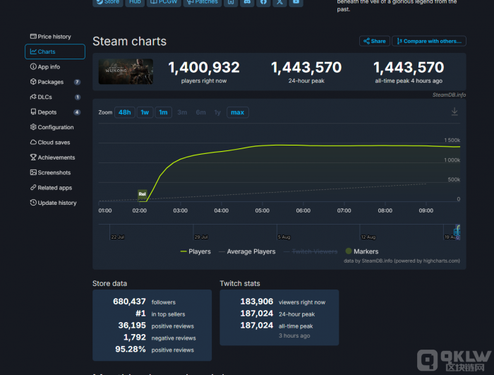 截至8月20日中午14點左右,Steam平臺同時在線的最高人數達144萬,可見《黑神話:悟空》的魅力。