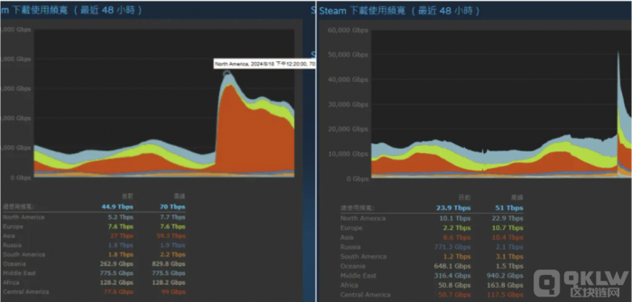 就在前天(18日)晚上,《黑神話:悟空》已開放PC和PS5平臺預先下載。網友Pirat_Nation昨晚發推文表示,《黑神話:悟空》在Steam上的預先下載使用帶寬,已經超過2020年《賽博朋克2077》預先下載時的帶寬紀錄。根據圖片顯示,《賽博朋克2077》在2020年12月創下的峰值為51 Tbps。而此次《黑神話:悟空》開放預下載后,創下了全球70 Tbps的紀錄,打破了《賽博朋克2077》保持了3年多的紀錄。