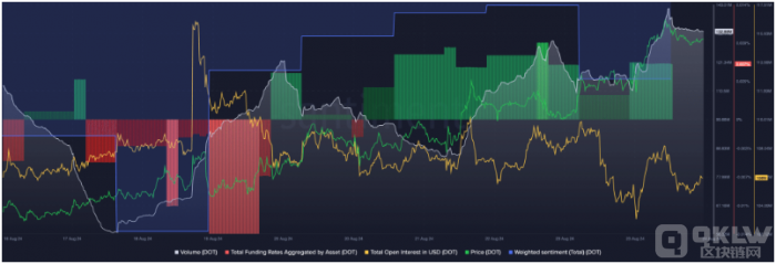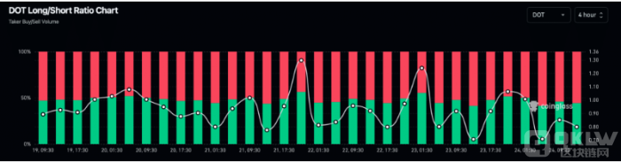 更值得關(guān)注的是,DOT 的多空比率正在下降,表明市場(chǎng)上的空頭頭寸開始增多,這可能會(huì)進(jìn)一步影響價(jià)格穩(wěn)定性。