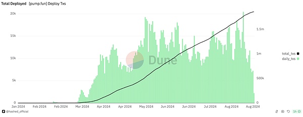源于$wif和$bonk等memecoin狂熱,激發了Pump.fun的創建,這是一個memecoin啟動器,允許上萬用戶在幾秒鐘內以幾乎零成本輕松創建Tokens。