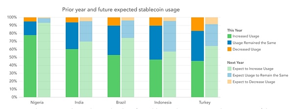 結(jié)果很明確:在VISA調(diào)查的國家中,非加密用途占據(jù)了穩(wěn)定幣使用方式的很大一部分。