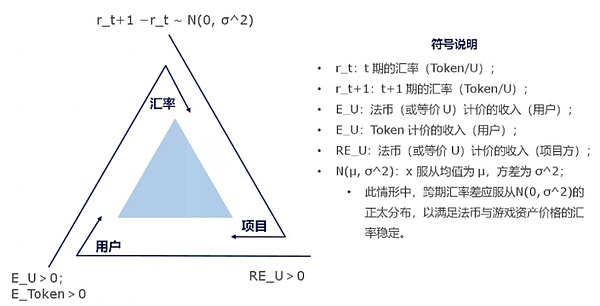 同時,由于傳統(tǒng)Web2游戲不具備出入金的途徑與通道,金融的屬性和必要性并未完全在傳統(tǒng)游戲中發(fā)揮出來,且由于傳統(tǒng)技術(shù)未能完全顯示出資產(chǎn)的所有權(quán)、使用權(quán)和借貸權(quán)等其他權(quán)力,Web3游戲在可發(fā)揮的空間上會更強大。在開放的經(jīng)濟系統(tǒng)中,可調(diào)動的資源和人員遠超封閉性的經(jīng)濟系統(tǒng)。金融屬性賦予了游戲內(nèi)資產(chǎn)更多的靈活性,充分提高用戶資產(chǎn)的時間與空間調(diào)配能力,并可以將資產(chǎn)的所有權(quán)和使用權(quán)分離。由于Web3Tokens與資產(chǎn)具有了更大的流動性,因此可具備出入金屬性的資產(chǎn)與Tokens仍需滿足Web3游戲經(jīng)濟系統(tǒng)的「不可能三角」的條件限制,即在固定匯率(Token/U)、資產(chǎn)和Tokens自由流動和獨立的調(diào)節(jié)手段(如調(diào)節(jié)資產(chǎn)與Tokens的供應量、內(nèi)部與外部條件下的借貸利率)三個條件中,最多滿足兩者。因此,在設(shè)計游戲經(jīng)濟機制的過程中,Web3游戲數(shù)值策劃需突破Web2游戲的限制,超越封閉經(jīng)濟的假設(shè)前提,在不可能三角中尋求平衡,以實現(xiàn)游戲的數(shù)值系統(tǒng)穩(wěn)定性與金融均衡性。