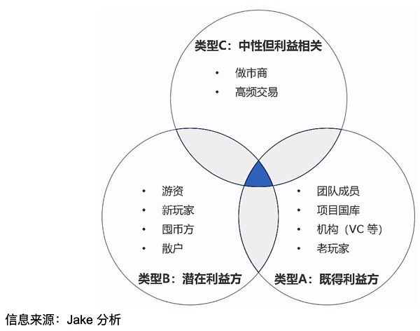 在市場上,項目方一般用ERC-20協(xié)議發(fā)行Tokens,受協(xié)議的限制,發(fā)行的Tokens數(shù)量有限且供給的數(shù)量固定。用戶受到貪婪與恐懼等情緒的影響,逐利的用戶對Tokens的需求會推動Tokens的價格上漲,會進一步刺激逐利用戶購買的需求。已持有Tokens用戶的賬面收益會升高。因此,在這種情況下,需求端是驅(qū)動幣價上漲的主要驅(qū)動力。所以,在Tokens需求端的角度分析,在Tokens持有的結(jié)構(gòu)上,新Tokens持有者與既得利益者(已持有用戶、項目方、團隊成員、投資機構(gòu)、囤幣者等)之間的動態(tài)博弈影響了Tokens的價格。首先優(yōu)先從雙方博弈分析,而后從多方博弈的角度分析。以下表格為簡化后的兩方「薅羊毛」的矩陣圖(后文會有多方博弈分析框架)。考慮到現(xiàn)實項目與工作室的復雜性,因此首先做若干點假設(shè):
