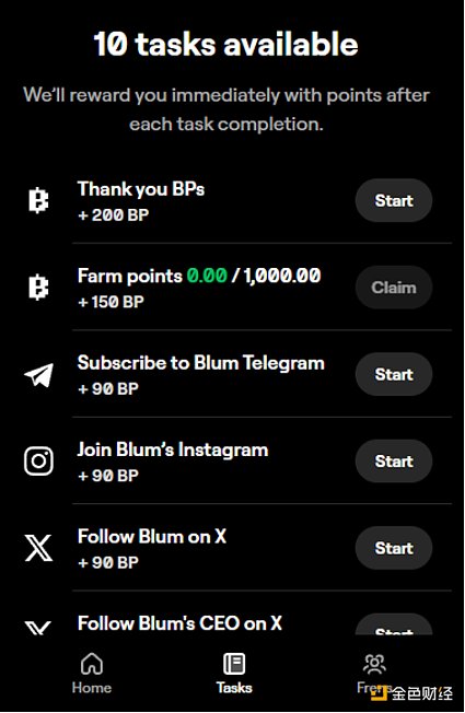 不知道為何,筆者有種2000年代開心樂園偷菜的既視感。Tomarket官方宣布將于10月31日進行TGE,詳細Tokens空投細節將在近期公布。Tomarket采用等級系統來確定每個用戶可獲得的空投量,用戶可在TGE前通過參與平臺活動提升等級,以獲得空投獎勵。Blum——融入游戲與社交元素的混合式交易所