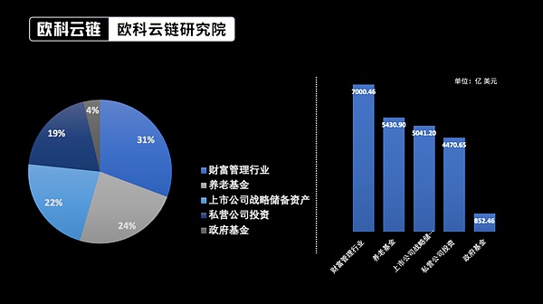 c.私營(yíng)公司按照現(xiàn)在已披露的對(duì)公開(kāi)上市公司的比重90%進(jìn)行同步計(jì)算。d.財(cái)富管理行業(yè)根據(jù)摩根斯坦利、Capgemini、埃森哲等調(diào)查報(bào)告,高凈值人群中已有71%進(jìn)行了對(duì)Bitcoin的投資,選取剩余待投資的高凈值人群財(cái)富規(guī)模乘以成長(zhǎng)系數(shù)4.5%再乘以投資比例5%進(jìn)行測(cè)算。