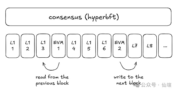 總結(jié)來看,HyperEVM類似于基于HyperliquidL1的二層,HyperEVM依賴于預(yù)編譯代碼讀取L1狀態(tài),也依賴于Events來與HyperL1產(chǎn)生交互。L1也存在一些系統(tǒng)合約幫助用戶在HyperEVM內(nèi)觸發(fā)交易,或是進行資產(chǎn)跨鏈。但與一般的Layer1——Layer2架構(gòu)不同,Hyperliquid為HyperEVM提供了更高的互操作性。