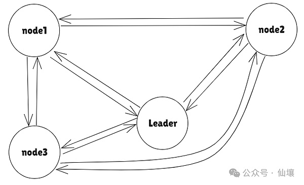 下圖展示了在非并行情況下的HyperBFT共識的消息傳遞方式,可以看到,所有的消息被Leader匯總并統(tǒng)一廣播,免去了節(jié)點之間自行交換消息的步驟,大幅降低了復(fù)雜度。