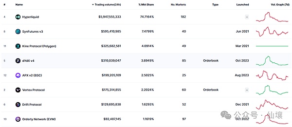 該圖為Hyperliquid提供的資金費率面板,其本意是給用戶提供一個直觀的資金費率對比,方便用戶進行跨市場套利,但卻暴露了Hyperliquid一些耐人尋味的問題。我們可以看到,大部分Token的資金費率都是雷同的,保持在默認的0.01%,許多人依此懷疑其實Hyperliquid上根本沒有那么多實際交易量。