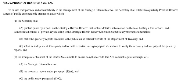 美國總審計長應(yīng)確保本法的遵守,并對相關(guān)事宜進(jìn)行定期監(jiān)督。總審計長的職責(zé)包括監(jiān)督財政部長和獨(dú)立審計師的工作,確保他們遵循既定的法律和程序。此外,總審計長還將負(fù)責(zé)評估和報告戰(zhàn)略Bitcoin儲備管理的整體效率和效果,為政策制定者和公眾提供重要的參考信息。