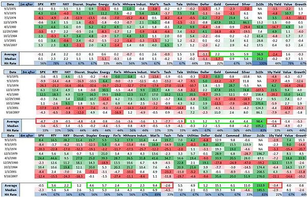 如果進一步看個股和板塊結(jié)構(gòu),NedDavisResearch的研究顯示美股中的防御性板塊在歷次降息中的表現(xiàn)會更好: