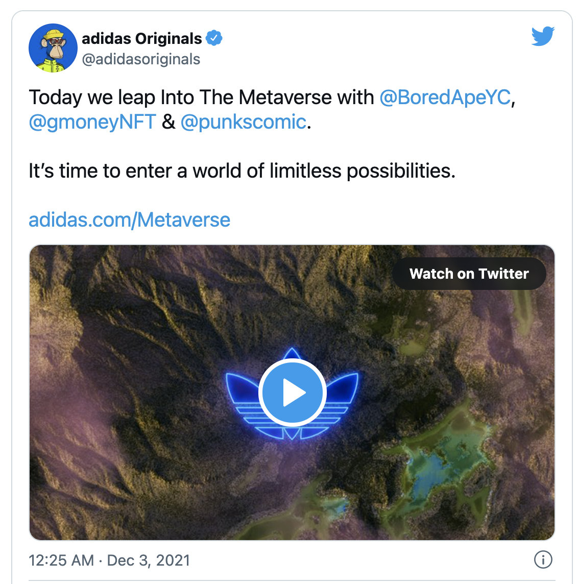 最近也從 Facebook 更名的 Meta 對阿迪達斯的加入表示歡迎,因為它說“我們迫不及待地想在 元宇宙中看到阿迪達斯。”