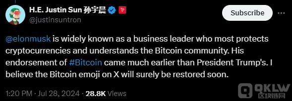 近日,TRON網絡創始人孫宇晨(Justin Sun)在社交媒體平臺X上公開請求該平臺老板埃隆·馬斯克(Elon Musk)恢復Bitcoin標簽表情符號。
