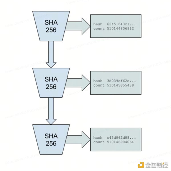 在 Solana 的 POH 序列中,通過應用 sha 256 算法就能確保整個序列的完整性,也就確定了其中交易的完整性。舉個例子,如果我們將交易打包成一個區塊,生成對應的 sha 256 hash 值,那么這個區塊內的交易就被確定,任何變動都會導致 hash 值的更改,之后這個區塊 hash 作為將作為下一個 sha 256 函數的 X 的一部分,再添加下一個區塊的 hash,那么上一個區塊以及下一個區塊就都被確定下來,任何變動都會導致新 Y 的不同。