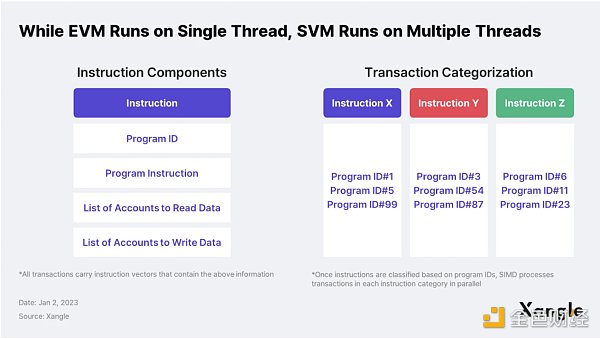 Solana 能夠每秒處理數千筆交易,主要的原因在于其 POH 機制、Tower BFT 共識和 Turbine 數據傳播機制。但是 SVM 作為狀態轉換的虛擬機,如果 Leader Node在進行交易執行中,SVM 處理速度較慢,那么就會讓整個系統的吞吐量降低,因此針對 SVM,Solana 提出了 Sealevel 并行執行引擎來加快執行交易的速度。