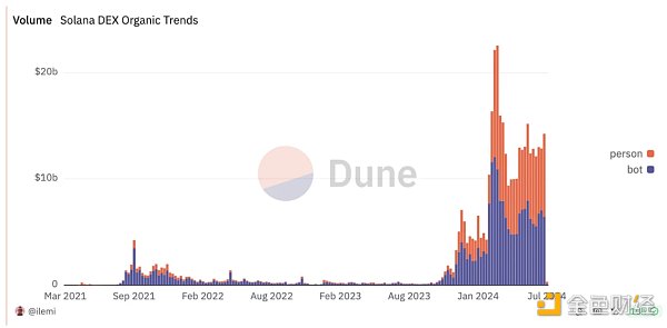 當前在整個 DEX 方面競爭激烈,其龍頭也經歷了多次遷移,從 Raydium,Orca 到現在 Jupiter 為主導地位。