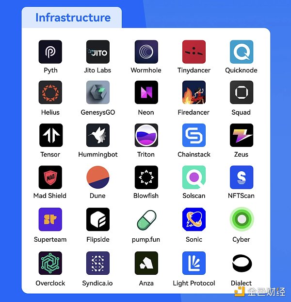 在基礎設施的構建上,主要的龍頭是預言機 Pyth 以及跨鏈橋 Wormhole,也包括一些針對性的解決方案大眾可能了解較少,比如: