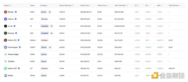 DePin 數據概覽,圖源:DePin Scan