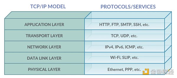 網絡協議層級—— 5 層結構,圖源:Research Gate